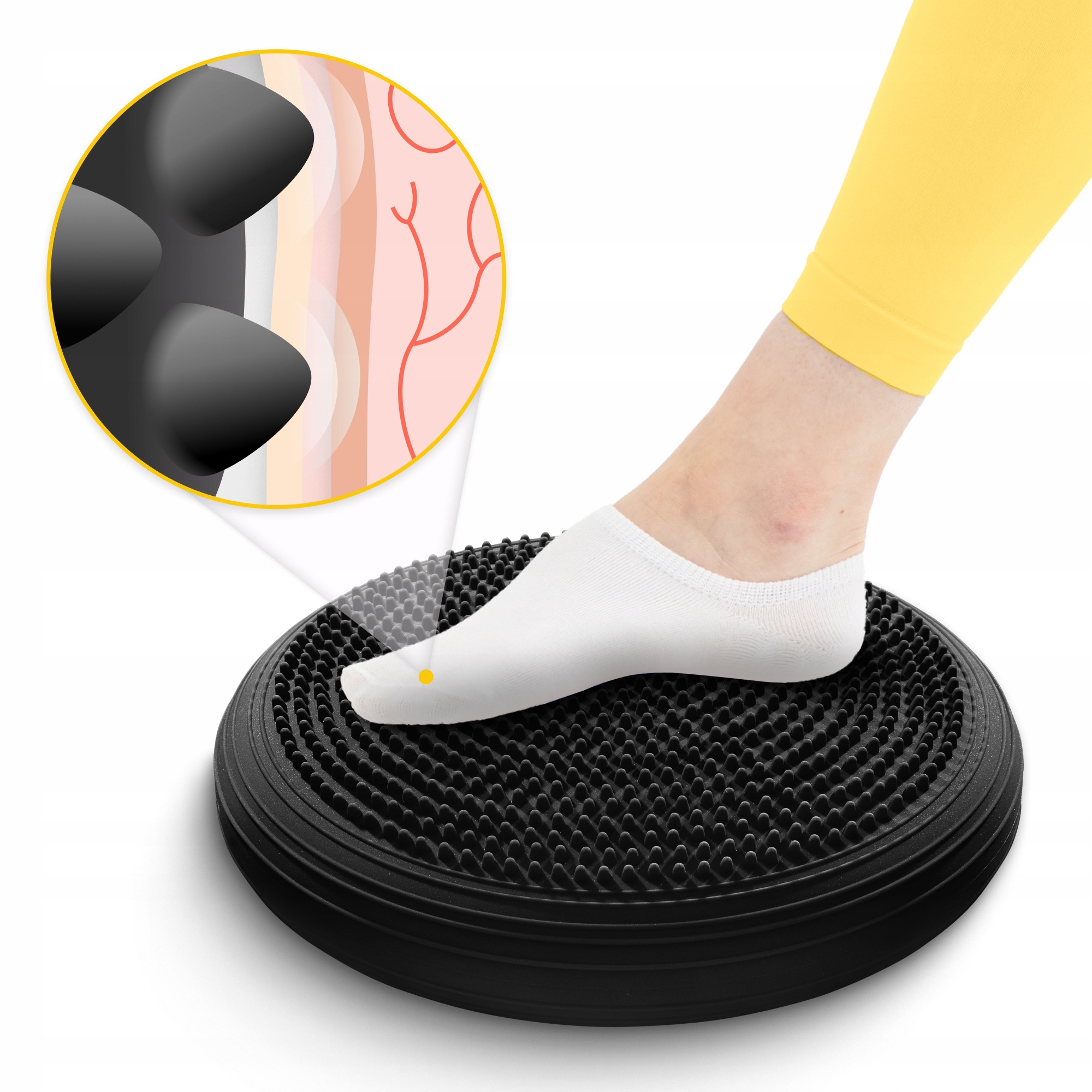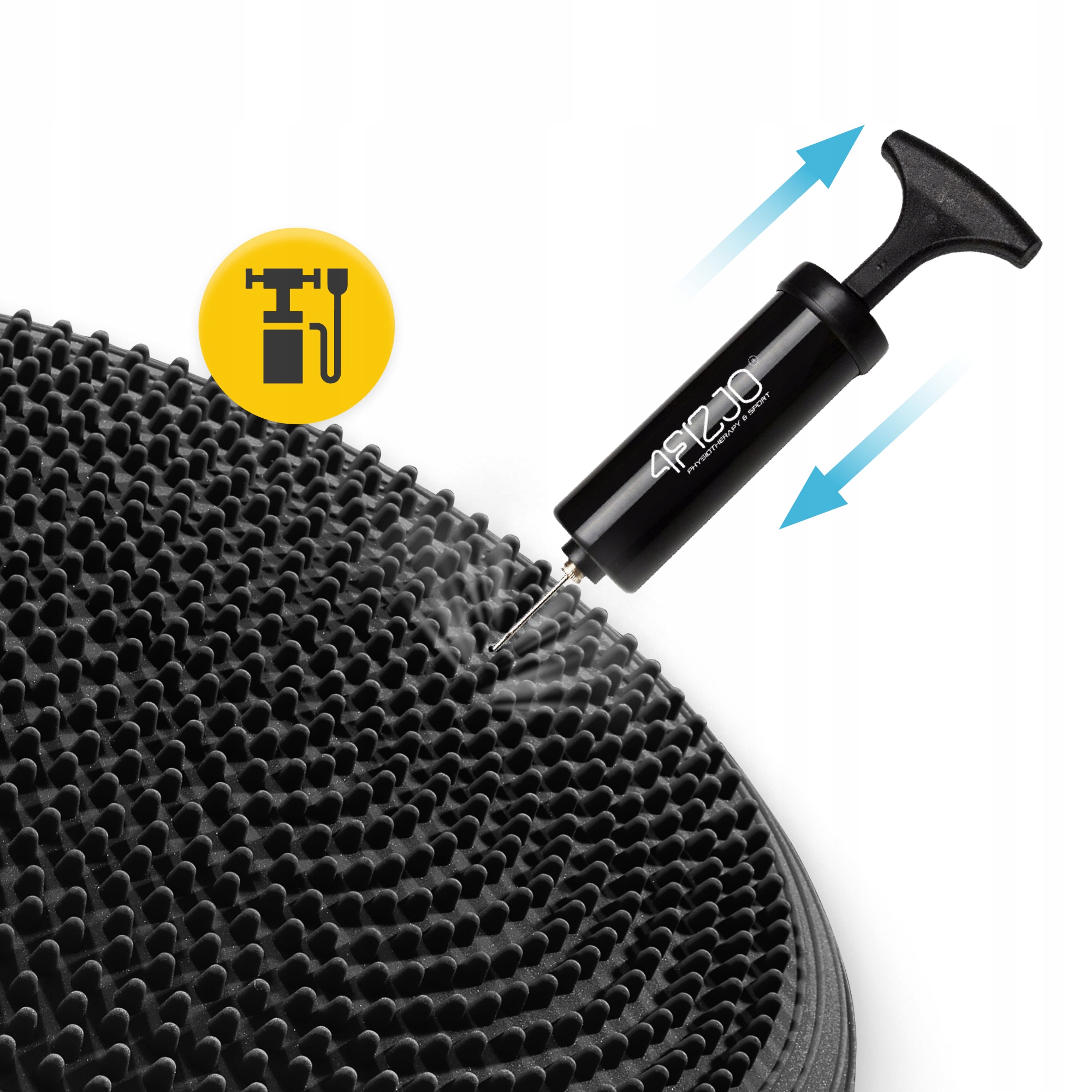 Для того чтобы правильно накачать инвентарь, необходимо запомнить основное правило: независимо от того, сидим ли мы, стоим, отжимаемся на подушке, важнейшая ее задача - вывести тело из равновесия. Поэтому накачивать диск нужно так, чтобы он не касался земли во время активности. В комплекте для этого предусмотрен компактный насос с иглой.