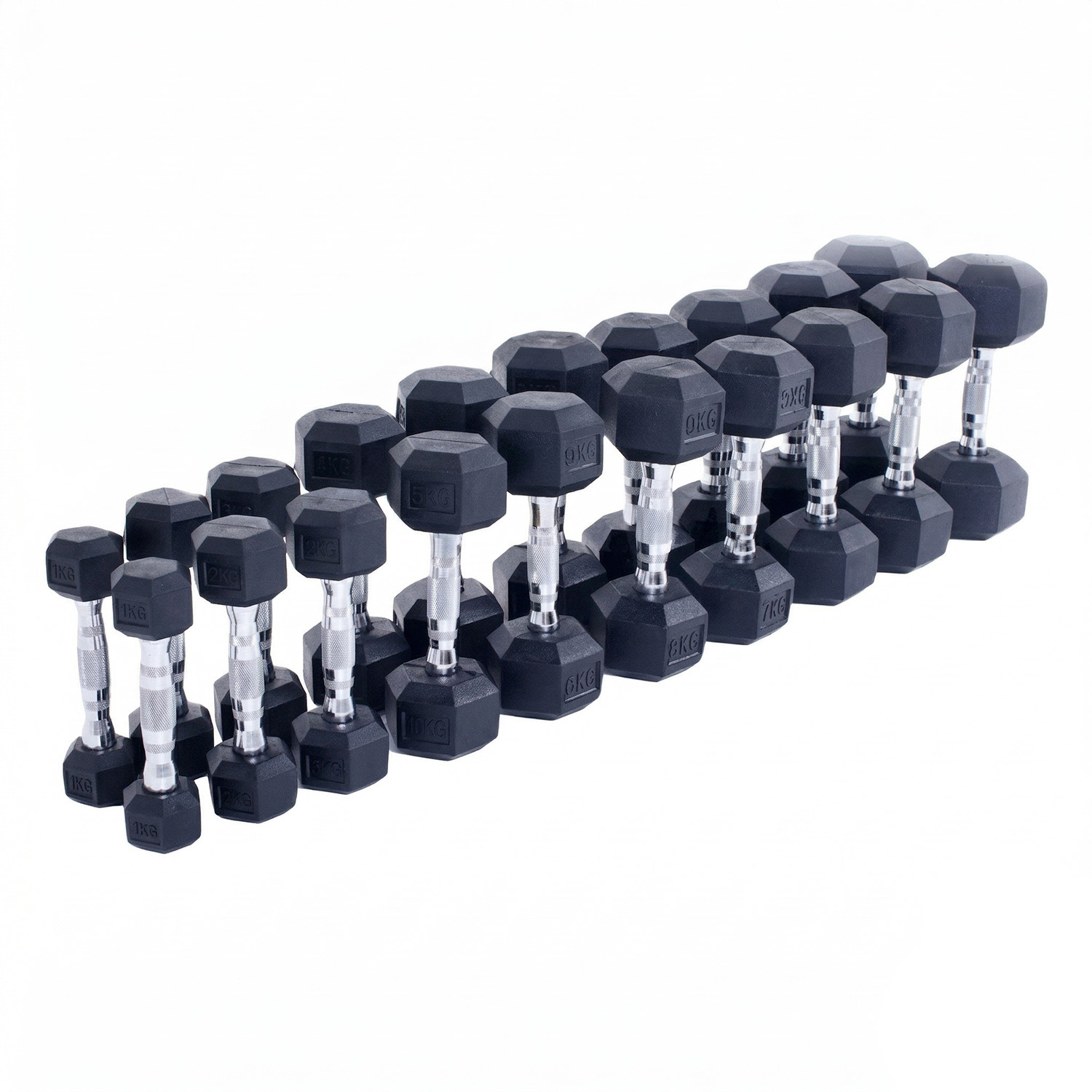 Гантельный ряд 1-10 кг шестигранные.