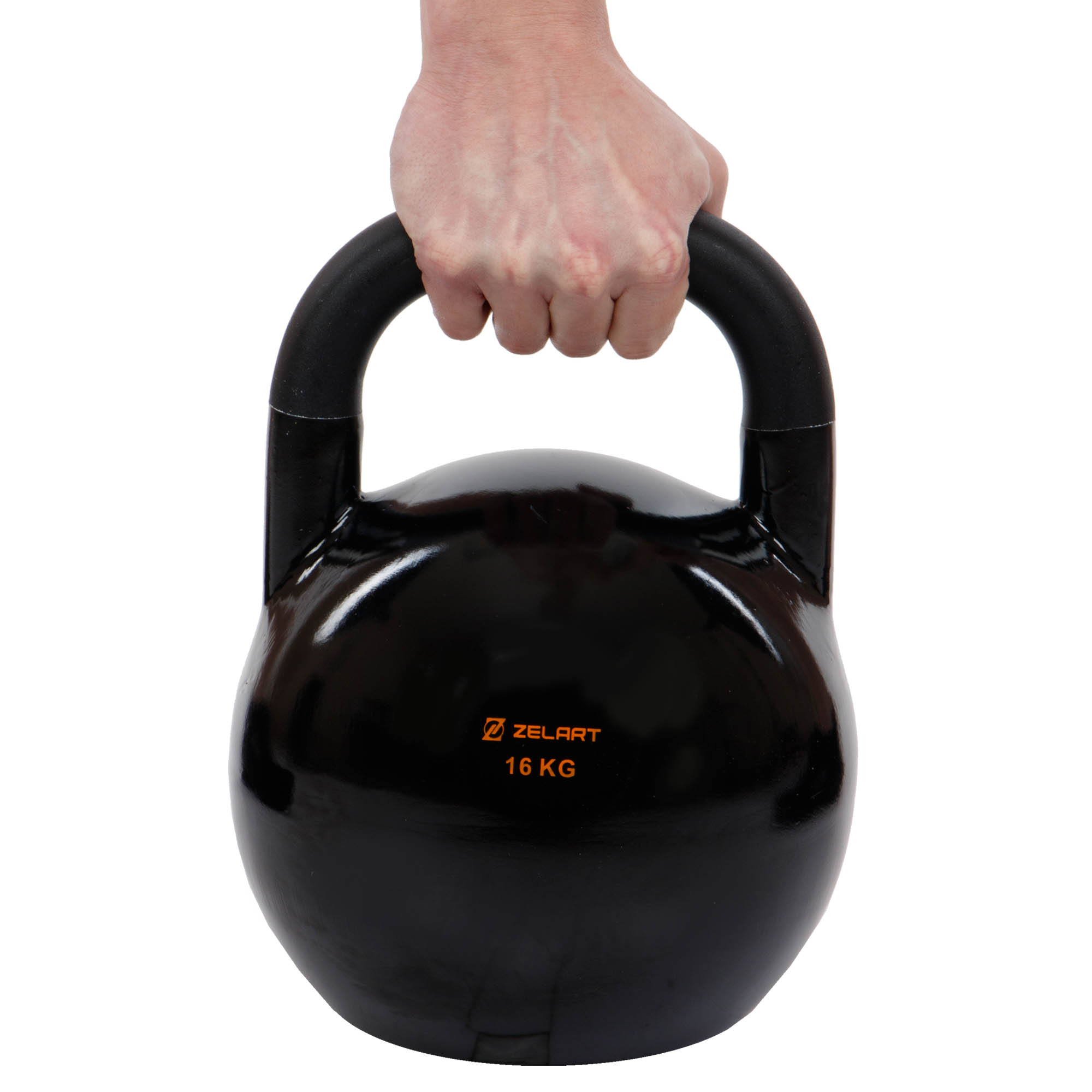 Стальная гиря классической соревновательной формы подойдет для тренировок профессиональных спортсменов-гиревиков, любительских тренировок в домашних условиях и тренажерном зале. Снаряд изготовлен из стали, покрыт краской черного цвета.