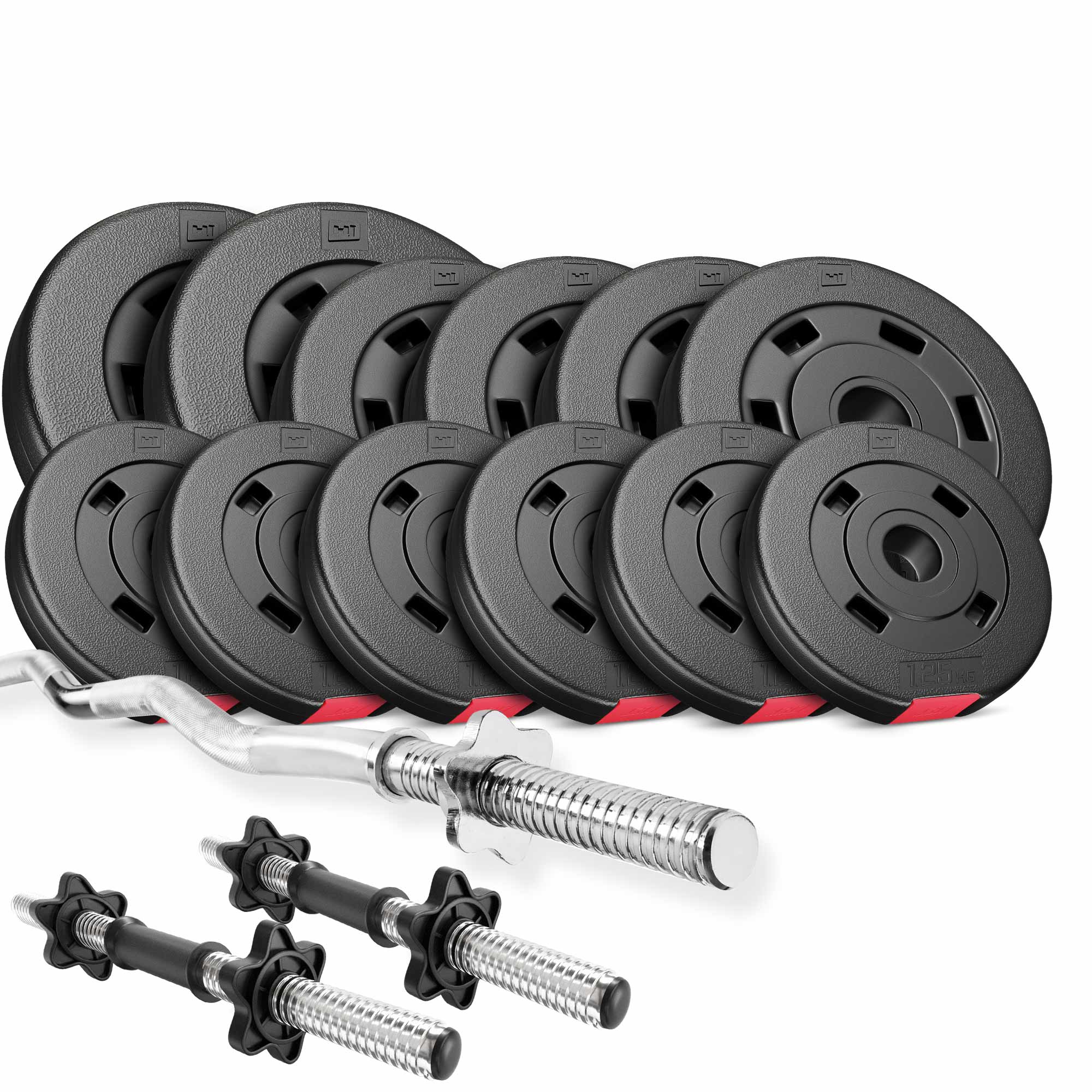 Благодаря тщательно подобранной конфигурации и высококачественным компонентам этот набор оценят как начинающие, так и продвинутые пользователи. Диски для штанги покрыты несколькими слоями ABS-пластика, чтобы при падении они не повредили пол.