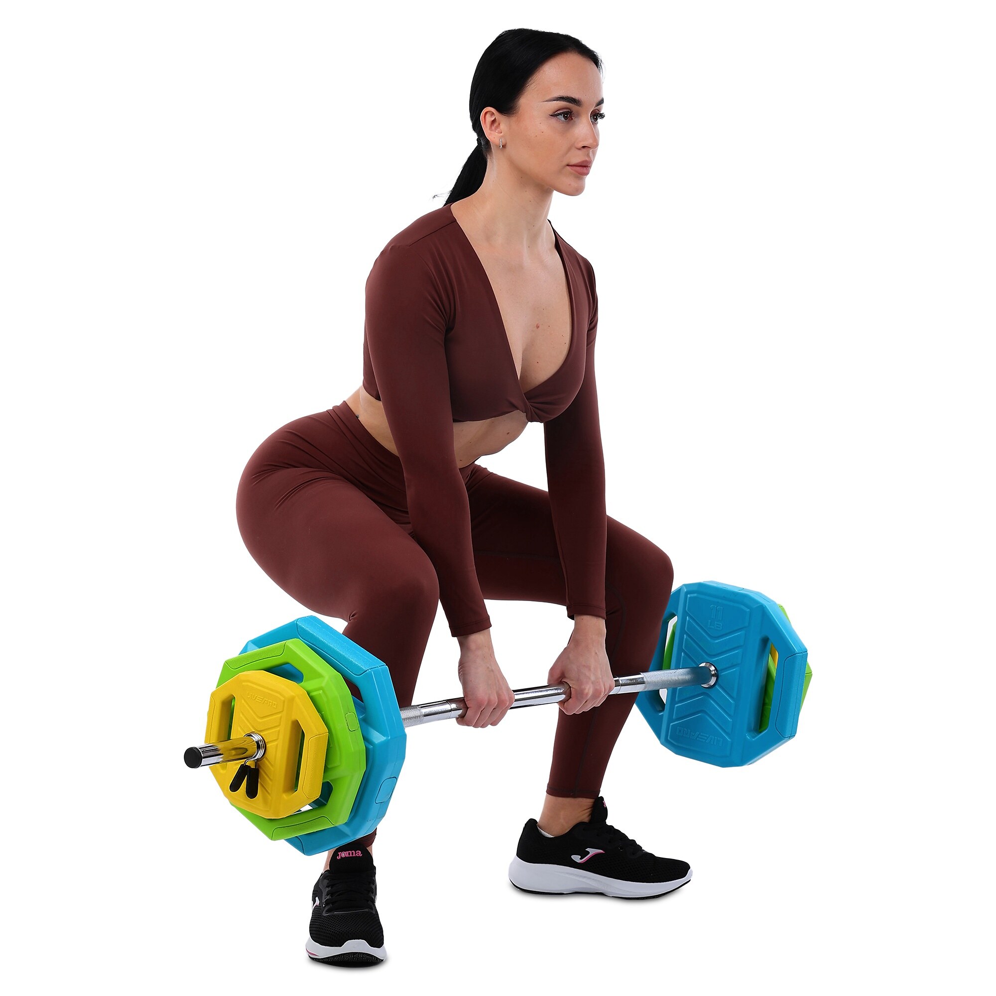 Штангу для фитнеса можно использовать во время занятий по популярной системе фитнес-памп. Эти занятия предполагают выполнение упражнений в энергичном темпе. Вес отягощения при этом должен быть умеренным. Штанга разборная и позволяет регулировать вес отягощения. Во время тренировки вы сможете подобрать идеальный вес штанги под свои нужды и упражнения.