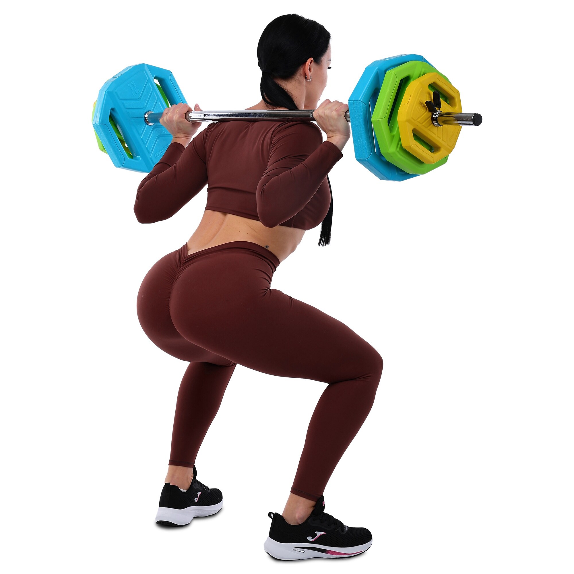 Штанга для фитнеса от бренда LiveUp - это инвентарь, который поможет стать стройнее и тренироваться по методике фитнес-памп. Конструкция штанги разборная, вес можно регулировать. В комплект поставки входит металлический гриф с насечками для лучшего сцепления с руками, а также комплект дисков. Чтобы во время энергичной тренировки диски не спадали с грифа, штанга комплектуется парой замков. Они препятствуют смещению дисков штанги.