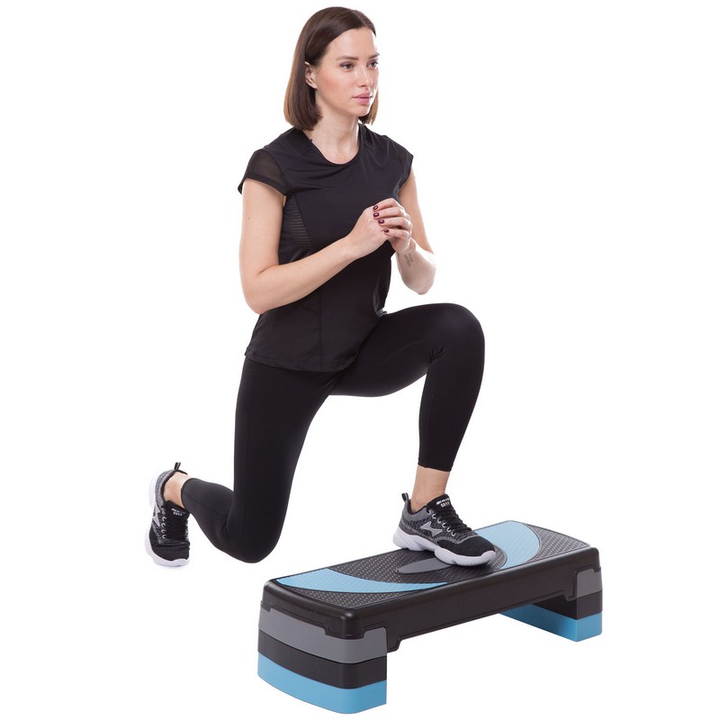 Степ-платформа – современный спортивный снаряд, помогающий активнее заниматься такими видами тренировок, как аэробика и домашний фитнес. ОСОБЕННОСТИ СТЕП-ПЛАТФОРМЫ ДЛЯ СПОРТА Платформа для аэробики представляет собой универсальный тренажер, который оптимально подходит людям различного возраста, а также пола в том числе. Данная платформа имеет такие особенности: Изготовлена из высокопрочного пластика, который не изнашивается со временем и не трескается от нагрузок; Для дополнительной прочности в модели представлены так называемые рёбра жесткости; Нижняя поверхность дополнена ножками с антискользящим покрытием, что делают тренировку безопаснее; Съемные блоки позволяют отрегулировать интенсивность и сложность тренировки непосредственно во время самих занятий. Кроме того, степ-платформа даёт возможность регулировки собственной высоты, от более низкой до высокой, что позволит регулировать сложность определенных упражнений. ХАРАКТЕРИСТИКИ ПЛАТФОРМЫ Модель имеет такие параметры: Длина: 79 см. Ширина: 29 см. Высота: 10-20 см. Уровни высоты: 2. Максимальный вес: 120 кг. Материал: пластик. Цвет: черный-синий