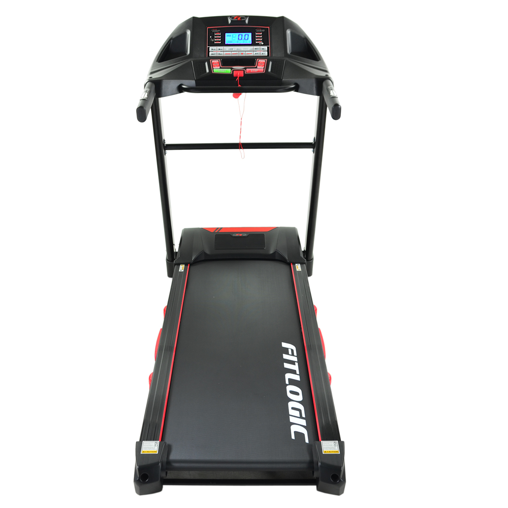 - бігова доріжка FitLogic T15 має консоль управління, в яку інстальований 5-ти дюймовий LCD дисплей з блакитним підсвічуванням на який виводяться: швидкість, час, дистанція, кут нахилу, калорії і пульс. Під екраном органічно вписалася аудіосистема з вбудованими динаміками і входом для підключення телефону або аудіоплеєра. А для абсолютного комфорту користувача, в консоль вбудований вентилятор. Праворуч і ліворуч від дисплея розташовані місткі ніші для особистих речей.