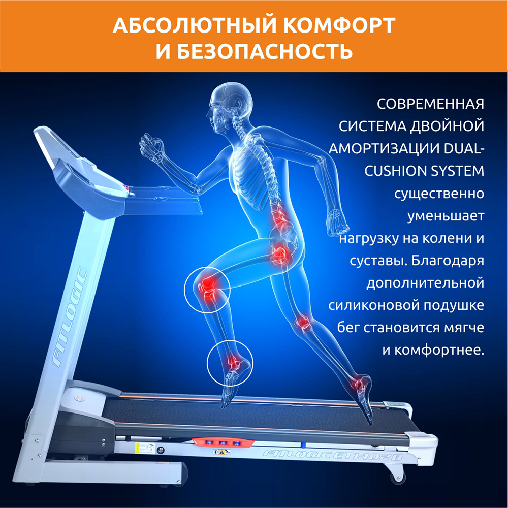 - Почніть тренування з повільного кроку, поступово додаючи швидкість і переходячи на більш інтенсивний біг. - комфортні заняття бігом забезпечують відразу кілька елементів конструкції, об'єднані в єдину систему.