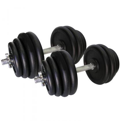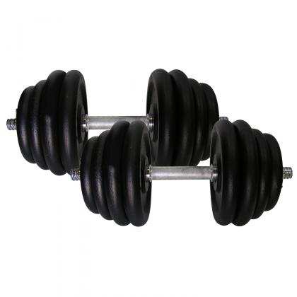 Комплектація: 2 грифа; 4 гайки; 8 дисків по 5 кг, 4 диска по 3 кг, 4 диска по 2 кг.