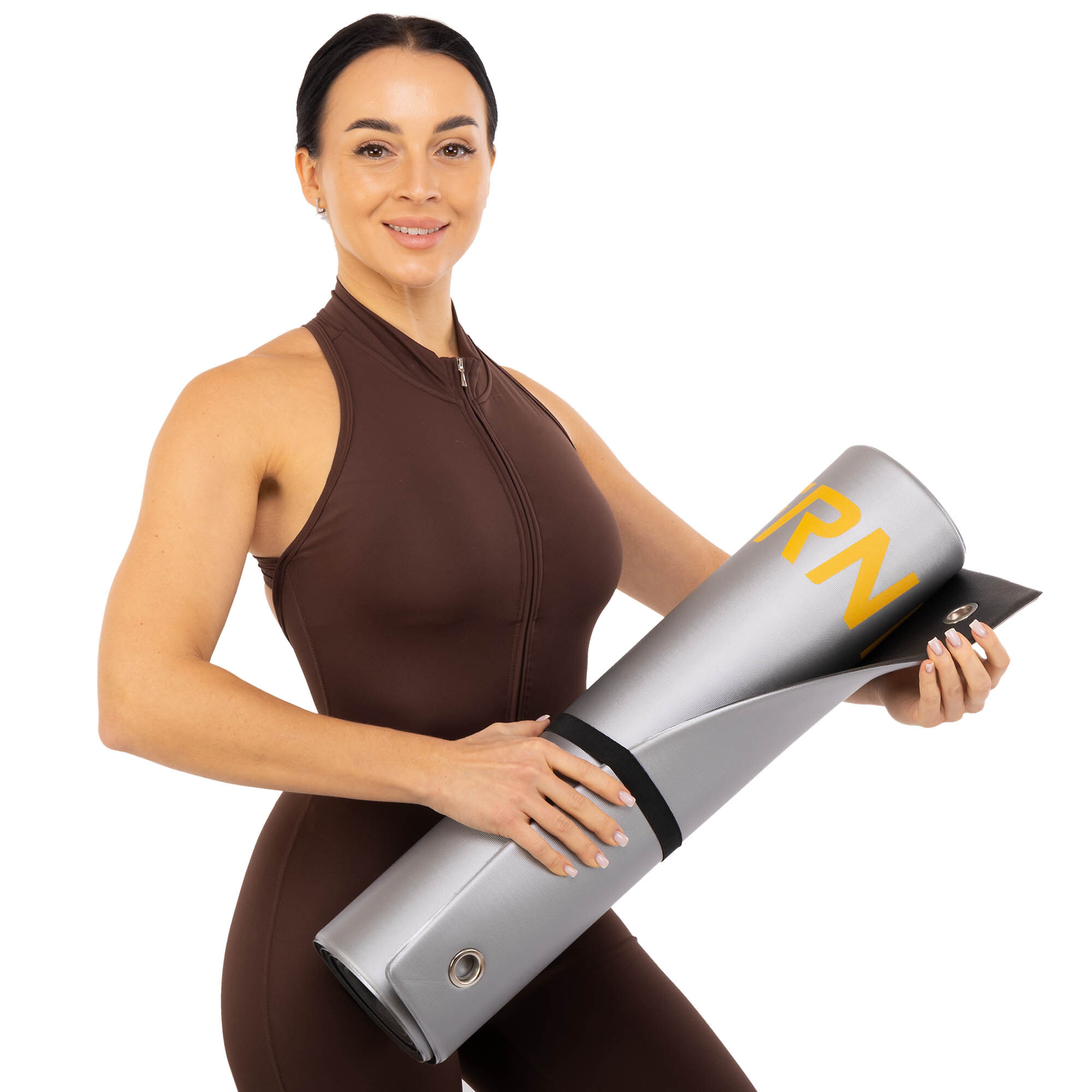 Спортивний килимок — незамінний аксесуар для йоги, фітнесу, пілатесу та аеробіки. Пружний килимок товщиною 8 мм знижує навантаження на суглоби, забезпечує м'якість і комфорт під час тренування. Аксесуар захищає від холоду та запобігає ковзанню рук, ніг або тіла, допомагаючи утримувати стійкі пози. Універсальний аксесуар можна використовувати в залі або вдома, для виконання розминок і заминок, розтяжок або основних тренувань.
