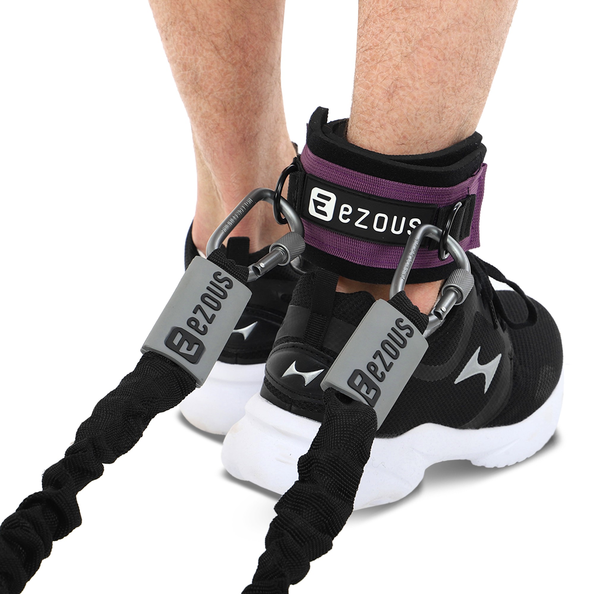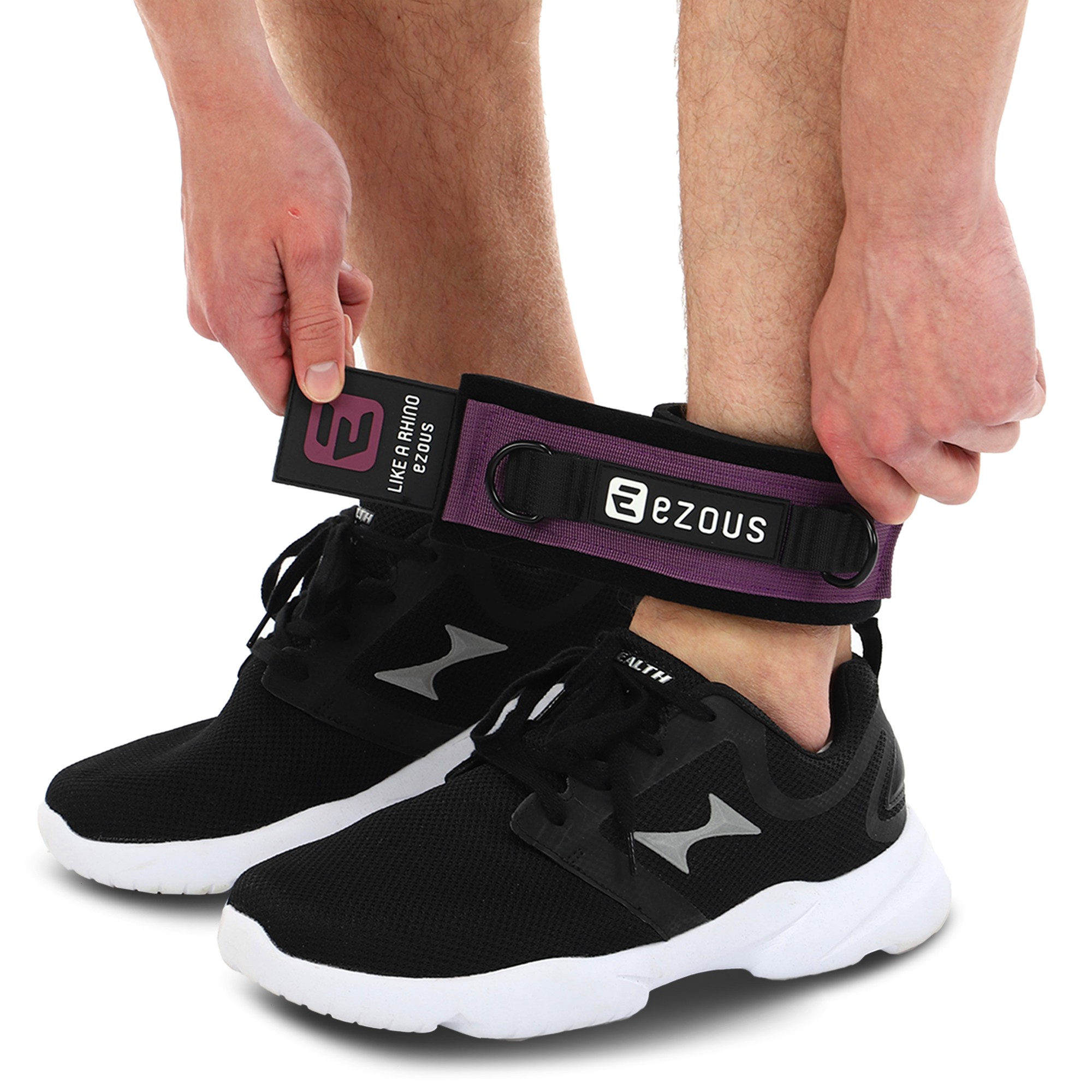 Лямка для ніг Training Leg Straps Ezous - це універсальний спортивний аксесуар, за допомогою якого можна привести ноги і сідниці в ідеальну форму. Приємний на дотик ремінець оптимальної довжини намотується на ногу та дає змогу приєднати тренажер з обтяженням або еспандер для виконання силового тренінгу. Для фіксації використана надійна липучка з якісного, зносостійкого матеріалу. Вона не стирається і зберігає міцність фіксації навіть після багаторазового використання. Міцна стропа з'єднує виріб із двома невеликими кільцями зі сталі. За допомогою карабіна до них можна приєднувати різний тренувальний інвентар.