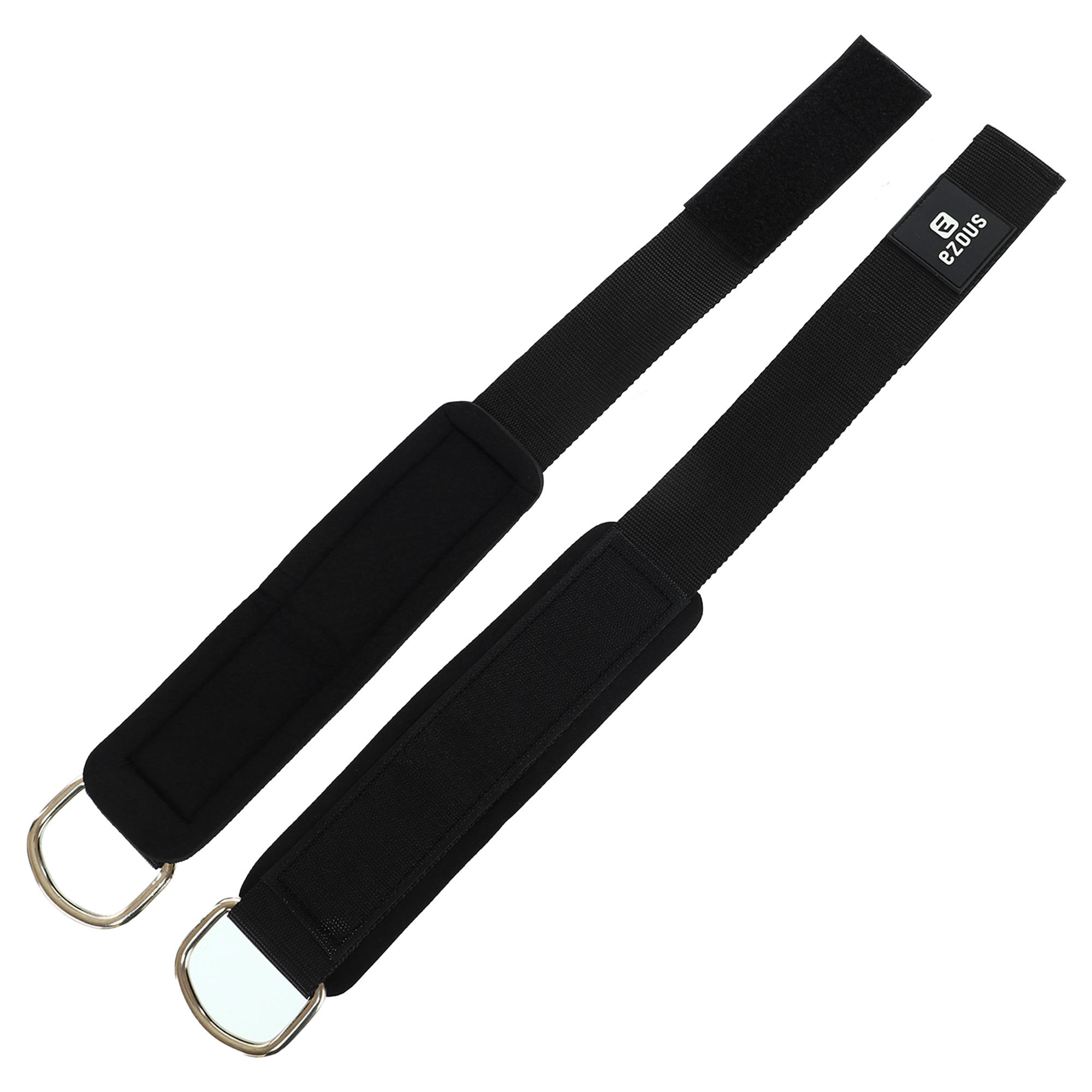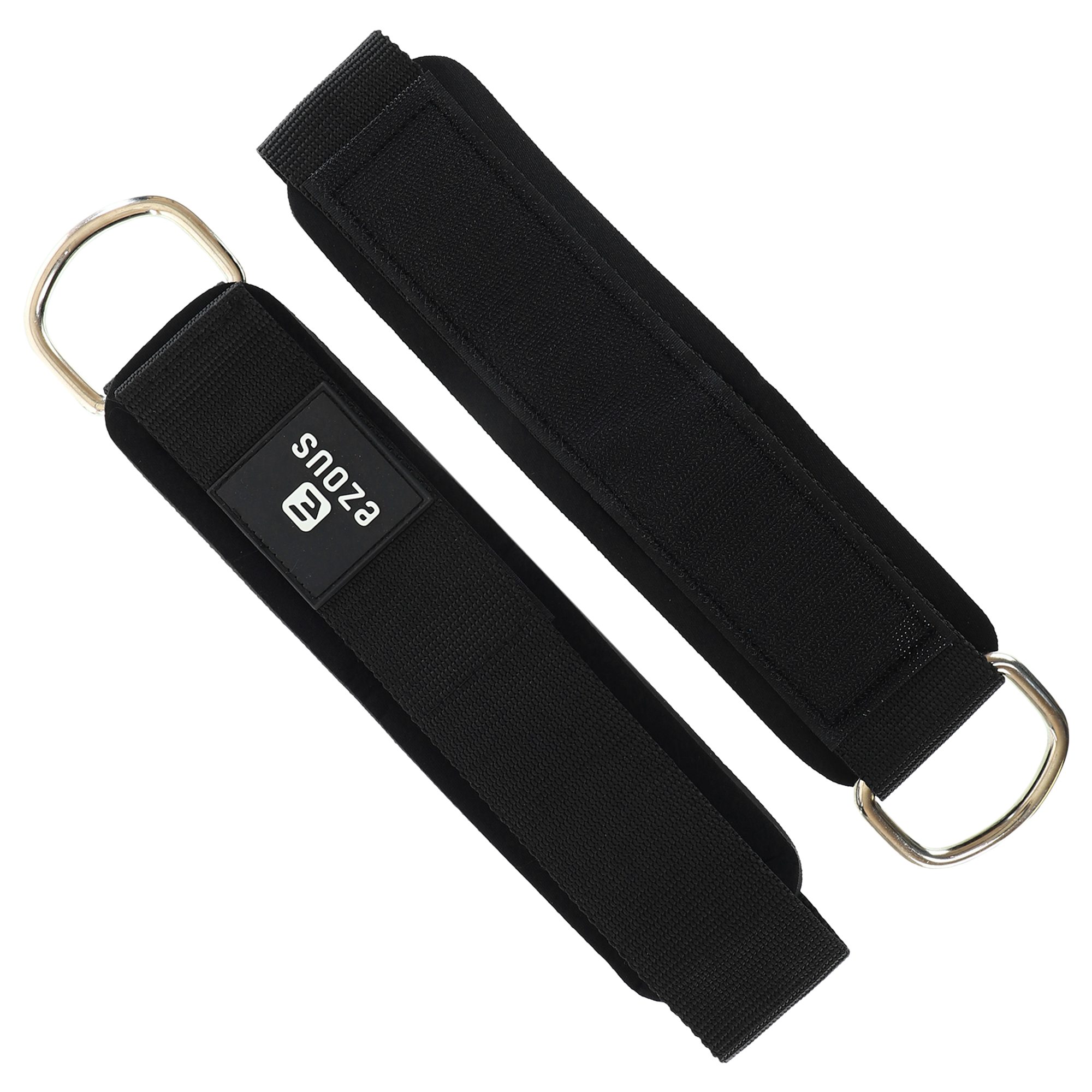 Лямки для ніг Training Ankle Straps 2.0 Ezous - це невід'ємний атрибут силових тренувань, призначений для виконання тяги ногами. Ремінці зі щільного неопрену охоплюють ноги в районі щиколоток, даючи змогу м'яко та надійно зафіксувати на нозі необхідне обтяження. Виріб із зовнішнього боку обшито поліестеровою стропою, яка забезпечує стійкість лямок до зношування і добре тримає форму. За допомогою стропи та липучок, манжети для тяги підганяються за розміром. Неопрен в точності повторює всі вигини тіла не створюючи додаткового тиску на кровоносні судини. Для фіксації обтяження передбачено велике D-подібне кільце товщиною 7 мм. Міцна та довговічна сталь витримує максимальні навантаження без деформацій.
