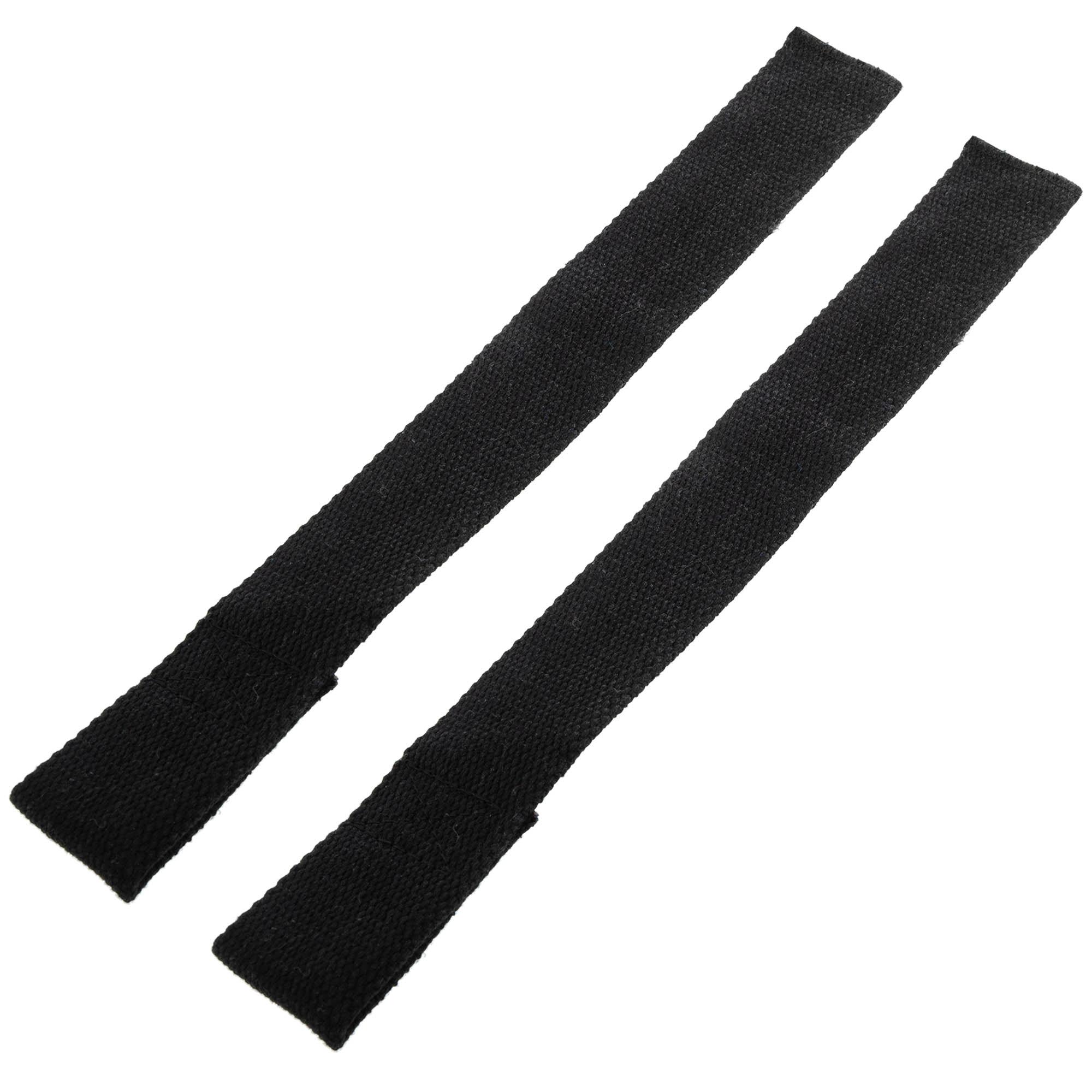 Матеріали лямок – це міцний поліестер та гума. Поліестер забезпечує стійкість до розтягування та стирання, а гумова вставка сприяє додатковому зчепленню з поверхнею, що особливо важливо при спітнілих руках або слизькому грифі.