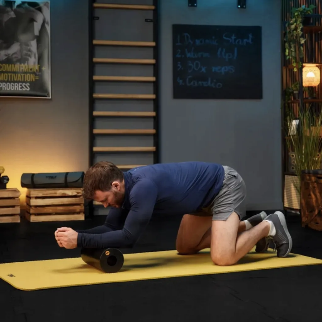 Сядьте або ляжте на килимок, розташувавши ролик під потрібною ділянкою тіла. Використовуючи власну вагу, повільно переміщуйтеся вперед і назад, щоб ролик масажував м'язи. Рекомендується зосередитися на напружених місцях і масажувати одну зону від 30 секунд до 2 хвилин. Якщо ви знайдете особливо болючу точку, зупиніться на кілька секунд, злегка натискаючи, доки напруження не зменшиться.