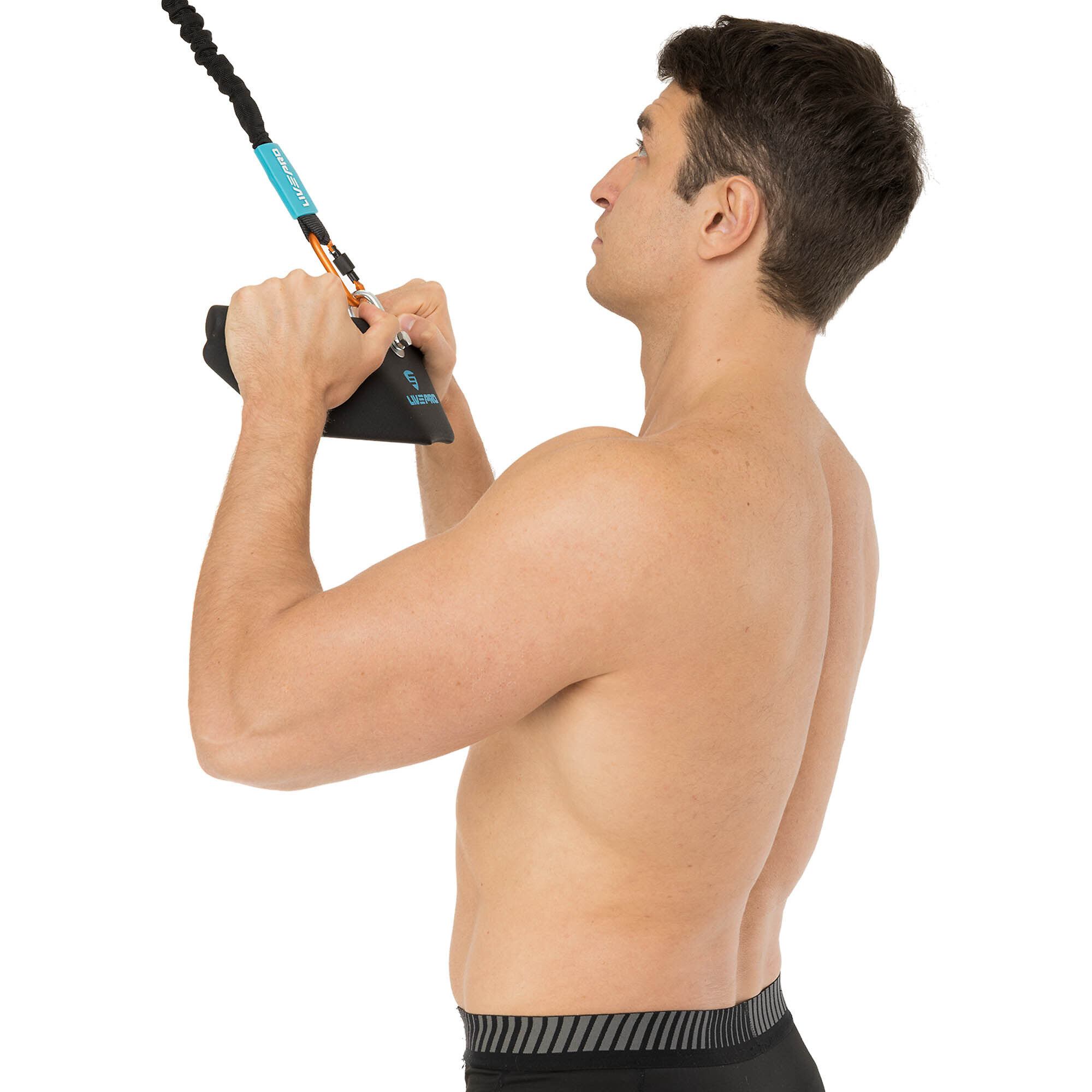 Ручки мають зручний для захоплення розмір. До блочного тренажера рукоятка кріпиться за допомогою кільця з нержавіючої сталі. Сталь також не схильна до корозії.