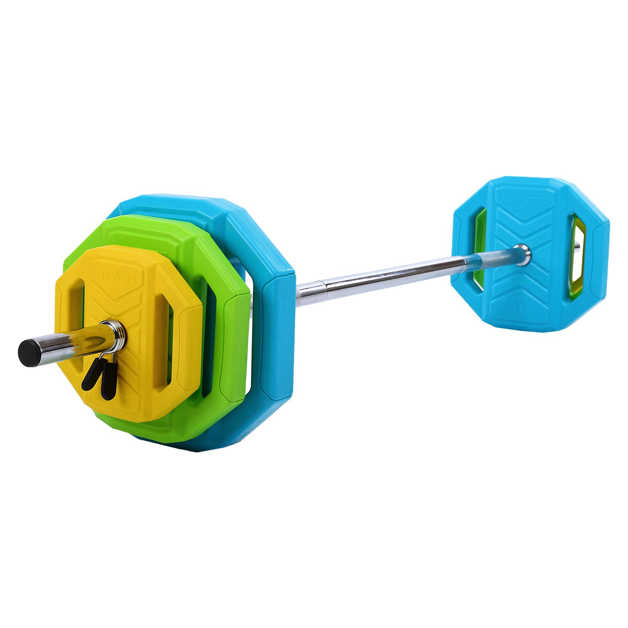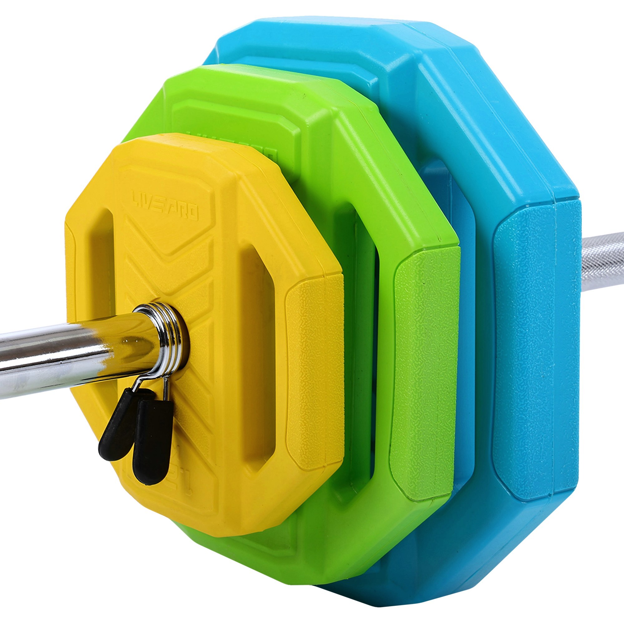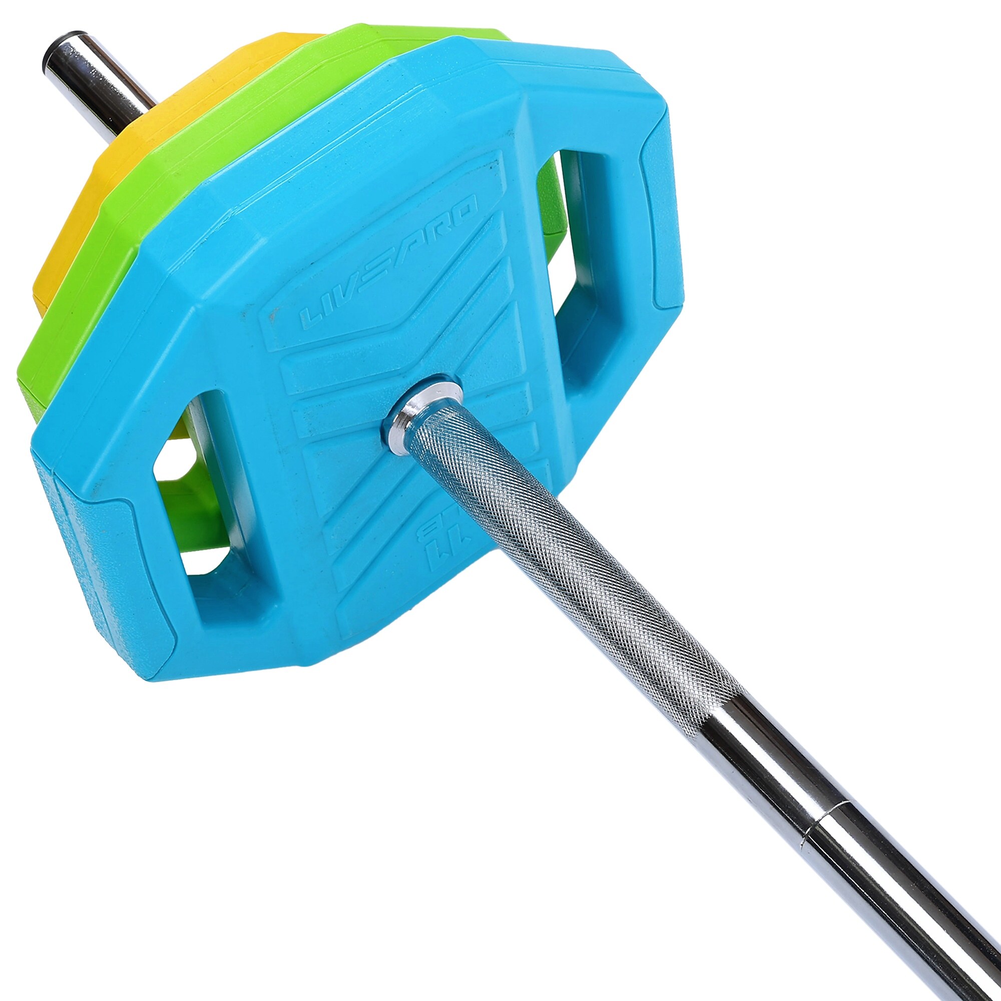 Штанга для фітнесу від бренду LiveUp - це інвентар, який допоможе стати стрункішим і тренуватися за методикою фітнес-памп. Конструкція штанги розбірна, вагу можна регулювати. У комплект поставки входить металевий гриф з насічками для кращого зчеплення з руками, а також комплект дисків. Щоб під час енергійного тренування диски не спадали з грифа, штанга комплектується парою замків. Вони перешкоджають зміщенню дисків штанги.
