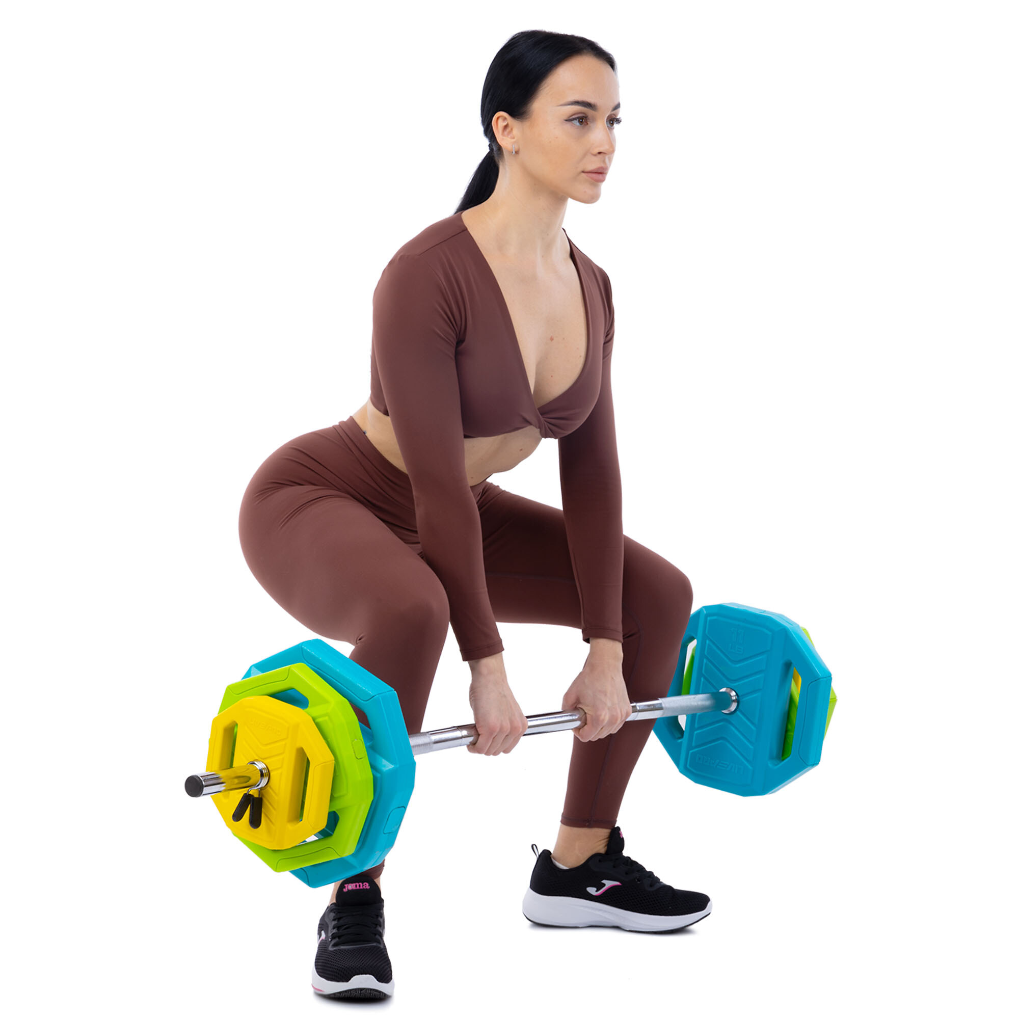 - Комплектація - Гриф – 1 шт, Замки – 2 шт, Диски 1,25 кг – 2 шт, Диски 2,5 кг – 2 шт, Диски 5 кг – 2 шт, Диски 10 кг - 2 шт