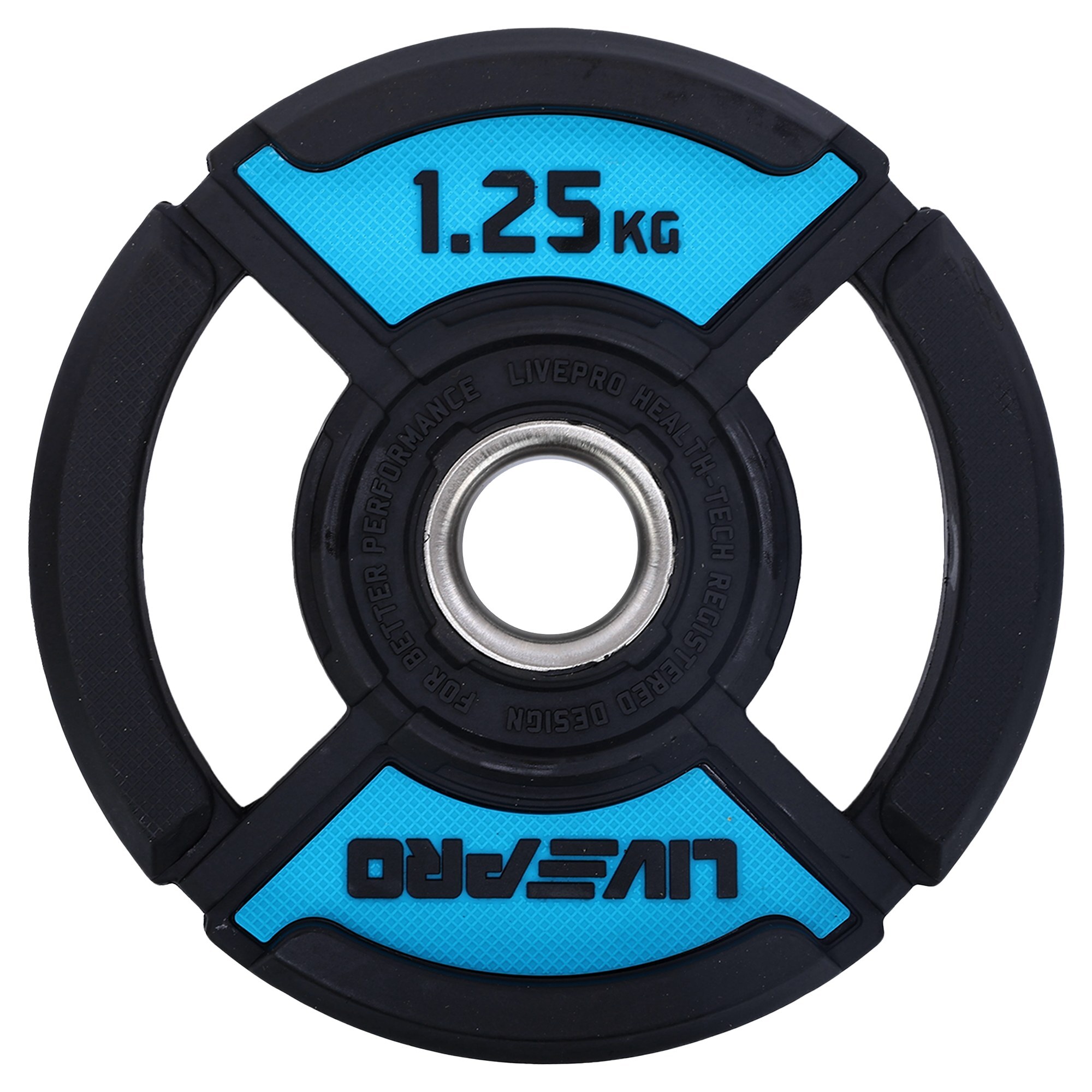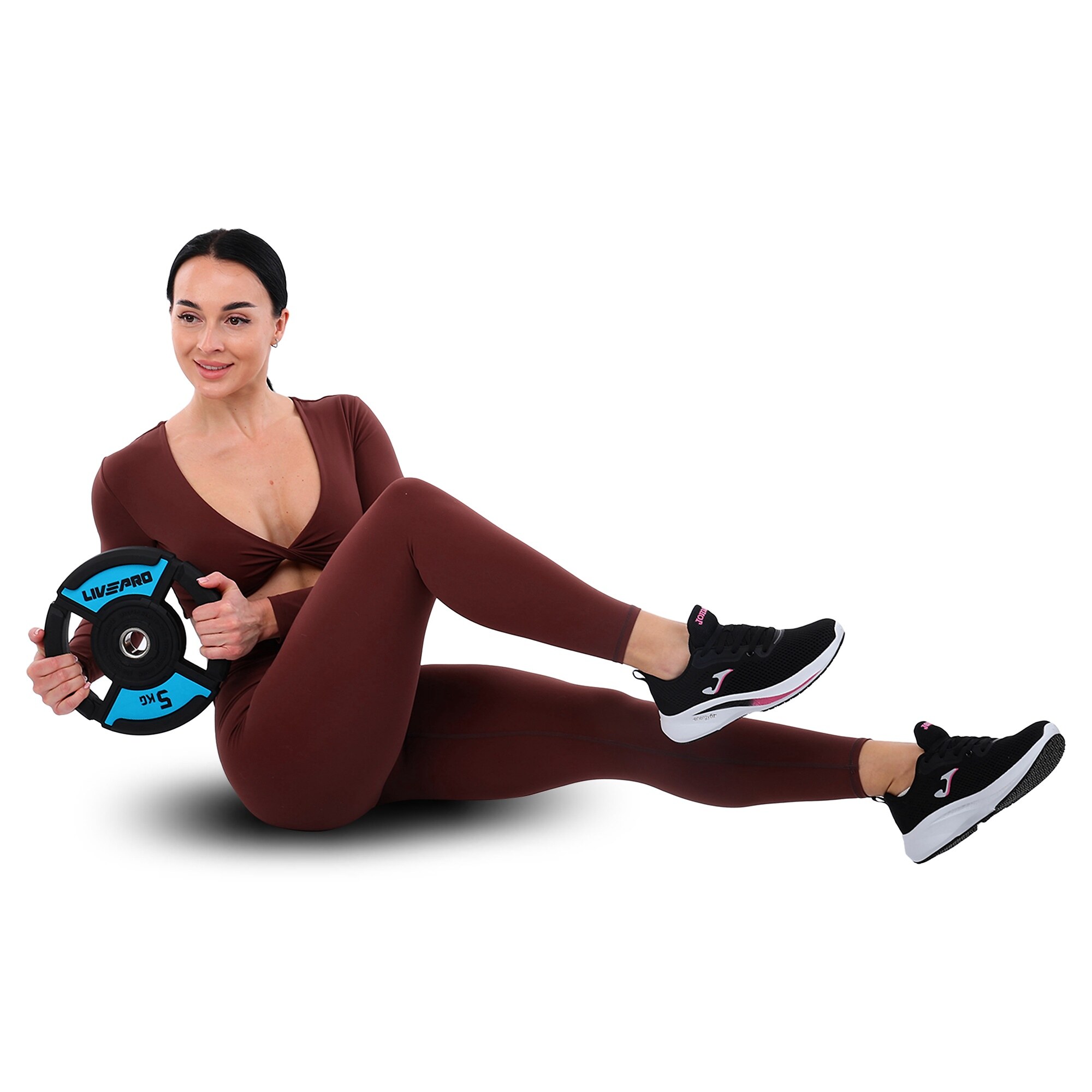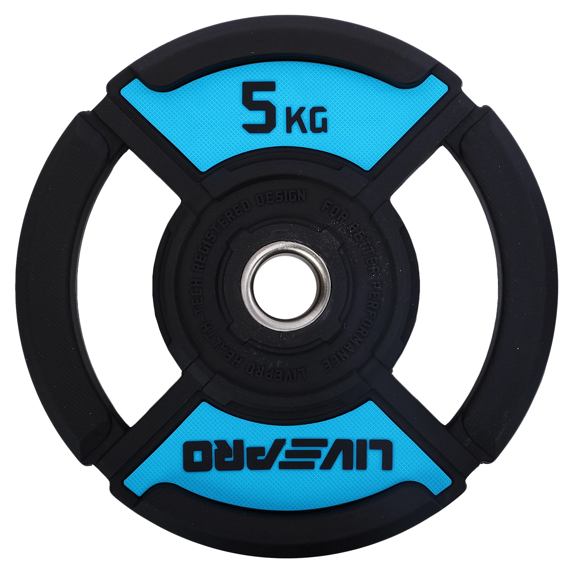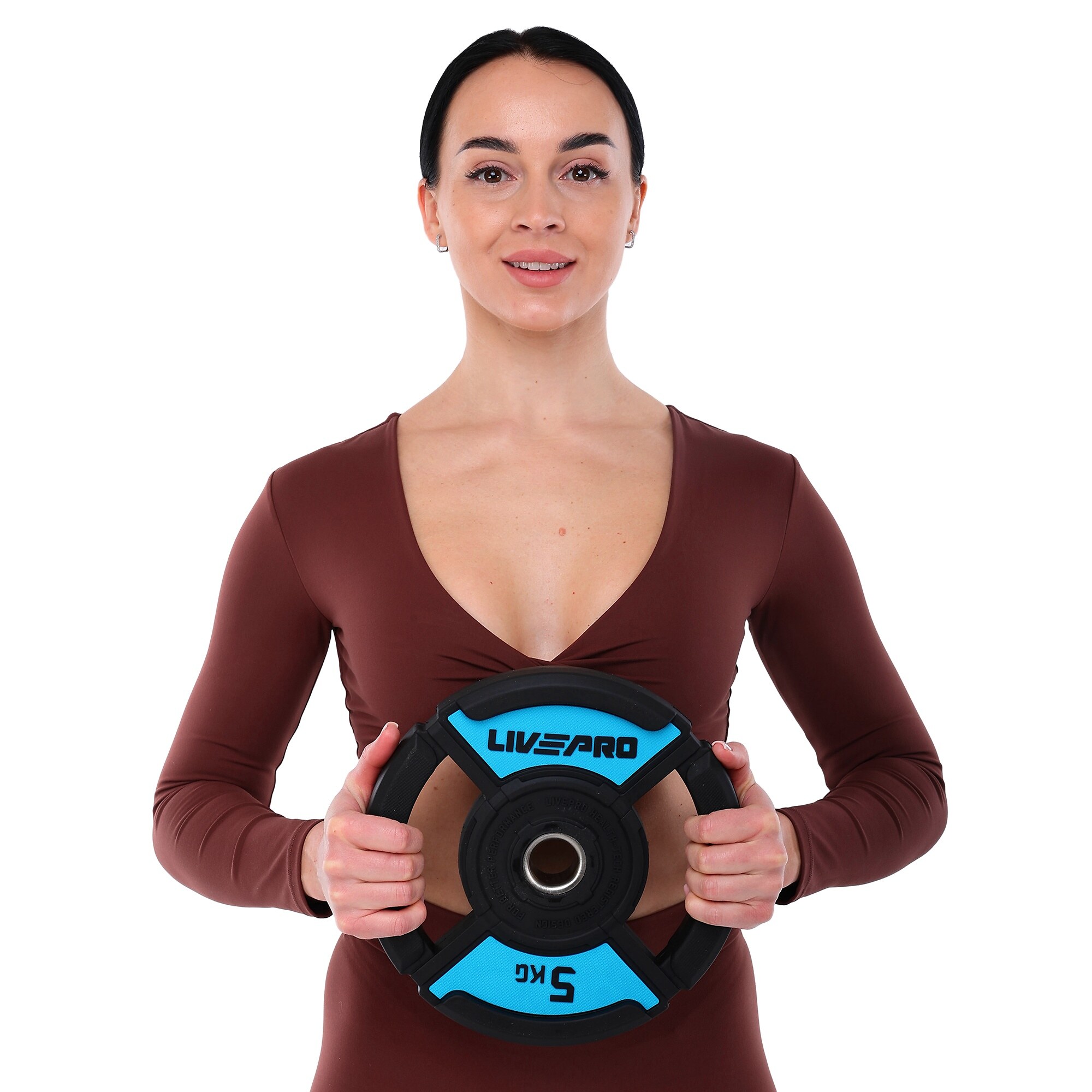 Диски виготовлені із заліза і покриті шаром поліуретану. Отвори в дисках дають змогу зручно захоплювати їх руками.