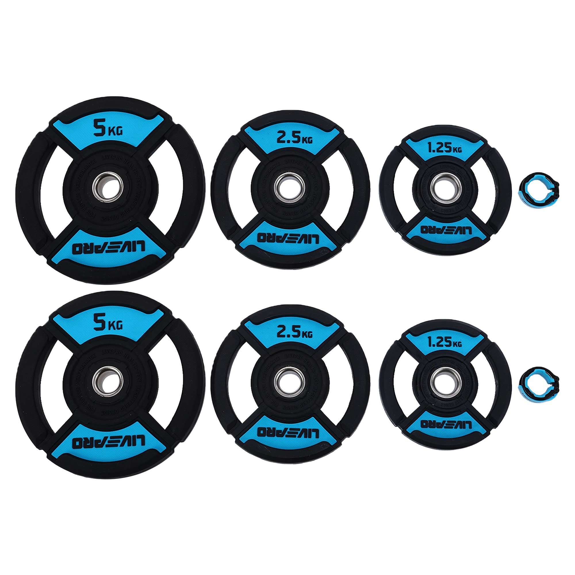 - Комплектація - Гриф – 1 шт, Замки – 2 шт, Диски 1,25 кг – 2 шт, Диски 2,5 кг – 2 шт, Диски 5 кг – 2 шт