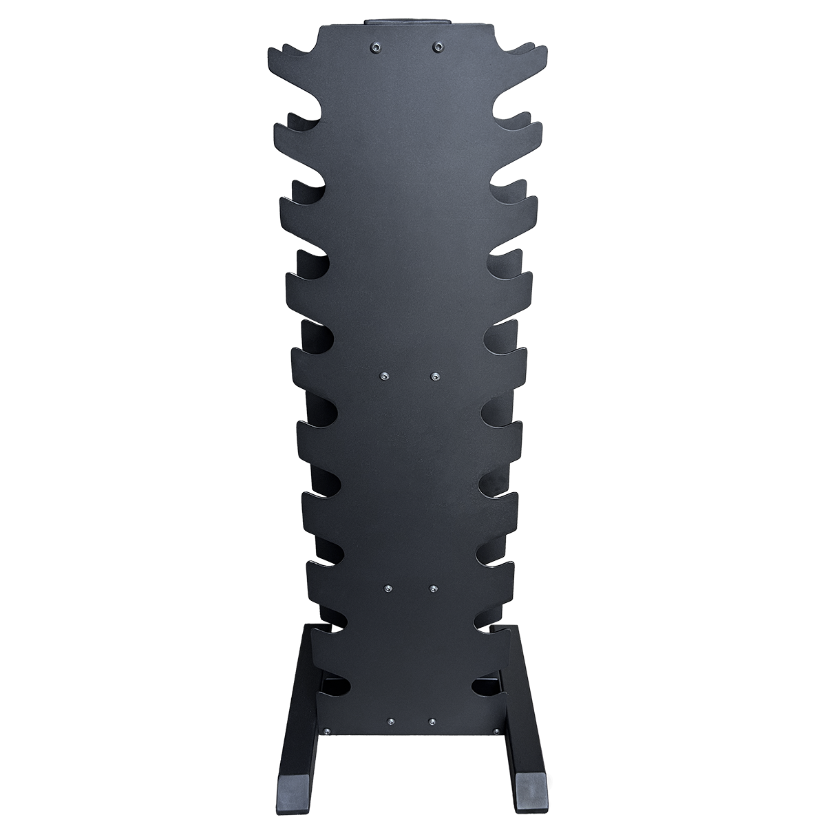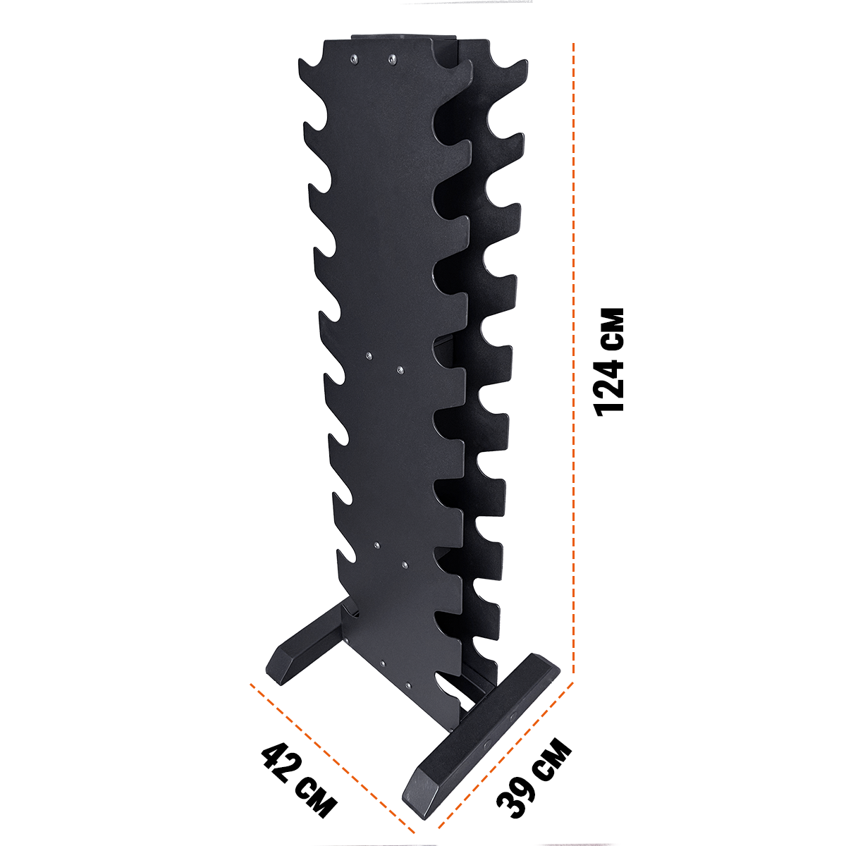 Варто відзначити й той факт, що стійка має форму «ялинки». Її комірки виконані у формі «лапок» ялини, завдяки чому спрощується та покращується фіксація гантель. Це також допомагає інвентарю не падати зі стійки, навіть якщо її випадково штовхнуть під час тренувань. Це допоможе зберегти не лише гантелі, а й підлогу під ними від подряпин та пошкодження.