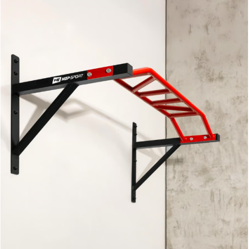 Тренувальний турнік Hop-Sport виготовлений зі сталі, профіль основної рами має діаметр 45 мм. Сталева конструкція покрита порошковою фарбою, що робить її більш стійкою до стирання та корозії. Міцні опори під перекладиною забезпечують максимальну стійкість під час тренування. Максимальне навантаження на турнік складає 150кг.